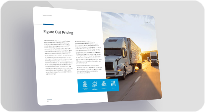 12 Trimble Transportation Bid Don’t Bet Determining how to price your lanes and the loads associated with them requires you to funnel in a lot of information, and ultimately distill all of those considerations into a single number. One basic consideration is that of supply and demand. As with any service, you must consider the capacity of supply and the demand for it. Rates will be sensitive to the relationship between the supply and demand of carrier capacity in any given area. This forms the basis of headhaul and backhaul areas, in which you can price higher and lower, respectively (since headhaul areas are generally industrial areas that produce more shipments, or demand, for lower capacity of carriers, or the supply). It’s good to pay attention to supply and demand that emerges in specific lanes - you may find that developing strong channels of multiple lanes between, say, two particular states may be very profitable because the demand for that lane is naturally very high. It’s also important to pay attention to the government’s role in the trucking economy, and in turn, your pricing. Policies issued by the Fed are designed to manipulate the cost and supply of money and can affect any industry - not just your own, but those you choose to do business with. So, it is wise to keep track of who these policies are most actively affecting, as a change to the money in their industry can easily affect your business as well. Additionally, it’s good to pay attention to Congress and its fiscal policy, as government taxing and spending can affect industries across the board, and thereby affect who you want to work with. Beyond considerations of an economic nature, pricing also needs to be looked at from an investment perspective. Most importantly, you need to consider risk/reward ratios, industry characteristics, diversification and returns. Figure Out Pricing Risk/Reward Ratios Industry Characteristics Diversification Returns Bid Don’t Bet