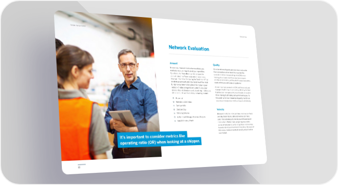10 Trimble Transportation Bid Don’t Bet Network Evaluation Amount In essence, measurements of amount help you evaluate the pure magnitude of your operation. Questions like “how does my rate compare to market rates?” or “how many out of route miles have we incurred while hauling for Customer X?” all relate to an amount, and provide some of the most fundamental information about the nodes in your network (nodes being shippers, your trucks, your drivers, their destinations and everything in between). Other amounts worth carefully evaluating include: | Historical | Market and Bid Rates | Cost per Mile | Cost per Day | Shipping Volume | All Forms of Mileage, Revenue, Margins | And, Ultimately, Profit Quality Velocity Considerations of quality are less black-and-white than calculations of amount. It’s important to consider metrics like operating ratio (OR) when looking at a shipper, but these numbers require careful consideration, as they don’t always accurately capture the value of a lane or customer. A lane may have an excellent OR, but these cost and revenue results may be completely offset by the fact that the lane has sunk a disproportionate amount of time, making it ultimately not worth the trouble. To this end, numerical measures of quality like OR are used best in conjunction with a measure of velocity. Measurements like miles per hour, revenue per truck per day, trailer turns, rate and revenue per hour, and in transit delay all provide you with a sense of momentum. Rather than just giving you a static sense of how you’re performing, these metrics help to understand your business’s trajectory. Because of this value, measurements of velocity should not be overlooked. It’s important to consider metrics like operating ratio (OR) when looking at a shipper. Trimble Transportation