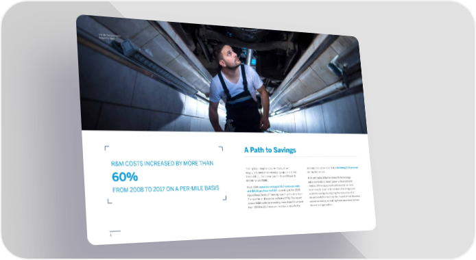 4 Trimble Transportation Bridge the Divide The highest marginal cost for fleets, driver wages, is followed immediately by equipment line items of fuel, loan/lease payments and Repair & Maintenance (R&M). Fleet R&M expenses averaged 16.7 cents per mile and $6.58 per hour in 2017 , according to the 2018 Operational Costs of Trucking report by the American Transportation Research Institute (ATRI). The report shows R&M costs increased by more than 60 percent from 2008 to 2017 on a per-mile basis, despite the average miles driven per truck declining 13.6 percent during this period. ATRI attributes R&M increases to technology advancements in newer power units and trailer models. While equipment continues to be more expensive to repair and maintain, the bridges are a path to savings by aligning the resources of all departments to maximize the impact of maintenance outcomes and by spreading these successes across the entire organization. A Path to Savings R&M COSTS INCREASED BY MORE THAN 60% FROM 2008 TO 2017 ON A PER-MILE BASIS Trimble Transportation Bridge the Divide
