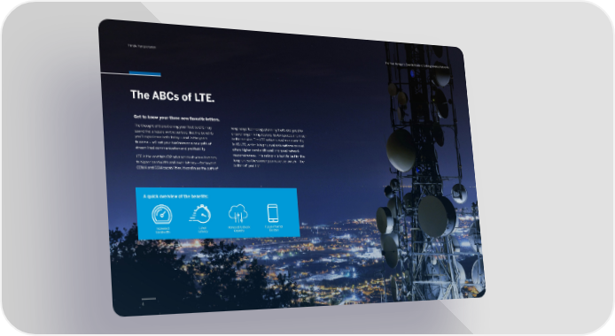 4 Trimble Transportation The Fleet Manager’s Essential Guide to Evolving Wireless Networks The ABCs of LTE. 4 Trimble Transportation The Fleet Manager’s Essential Guide to Evolving Wireless Networks Get to know your three new favorite letters. The thought of transitioning your fleet to LTE may sound like a hassle on the surface. But the benefits you’ll experience both today – and in the years to come – will set your business on a new path of streamlined communication and profitability. LTE is the next MAJOR advancement when it comes to higher bandwidth and lower latency – far beyond CDMA and GSM capabilities. It continues the path of long-range technology planning that’s designed to ensure longer-living devices, faster speeds and much better service. The LTE network available currently is 4G LTE, which is highly available nationwide and offers higher bandwidth and improved network responsiveness. This network is built to last for the long run, so the sooner you make the switch – the better off you’ll be. A quick overview of the benefits: Increased Bandwidth Lower Latency Increased Network Capacity Future-Proofed Devices