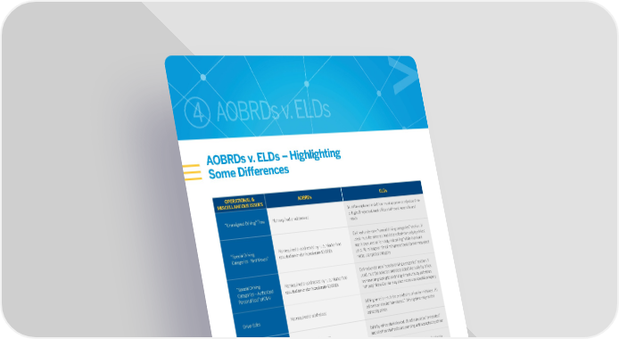 18 4 AOBRDs v. ELDs AOBRDs v. ELDs – Highlighting Some Differences OPERATIONAL & MISCELLANEOUS ISSUES AOBRDs ELDs “Unassigned Driving” Time Not required or addressed Must be captured and driver must approve or reject at time of login. If rejected, back office staff must reconcile and retain “Special Driving Categories - Yard Moves” Not required or addressed by rule. Market has resulted in vendor inclusion in AOBRDs Defined under new “special driving categories” section. If used, must be selected and deselected manually by driver, and is captured as “on-duty not driving” while in private yard. No mileage or time limits prescribed. Carrier may elect not to use special category “Special Driving Categories – Authorized Personal Use” of CMV Not required or addressed by rule. Market has resulted in vendor inclusion in AOBRDs Defined under new “special driving categories” section. If used, must be selected and deselected manually by driver, is shown on graph grid as driving time but is, by definition, “off duty” time. Carrier may elect not to use special category Driver Edits Not required or addressed Editing function must be provided to driver for mistakes. All edits must also be “annotated.” Driving time may not be edited by driver. Office Support Staff Edits Not required or addressed Edits by office staff allowed. All edits must be “annotated” and all office staff edits are pending until accepted by driver. Driver Certification of Daily Record Not required or addressed Required driver certification after the final required entry has been made or corrected for each 24-hour period. User Accounts Not required or addressed. Market has resulted in user IDs and passwords Unique username (and other required driver information) required for all authenticated drivers/users. Device Malfunctions – Time Period to Repair or Replace Not addressed Driver must notify company in writing within 24 hours of device malfunction. ELDs must be repaired or replaced by company within 8 days. Driver must revert to paper logs during ELD malfunction period. Device Registration & Certification Not addressed All ELDs must be registered with FMCSA, and self-certified by each vendor as compliant. Registered and certified ELDs are listed on FMCSA ELD website. Carriers may only select and use certified ELDs. Information originally compiled by Scopelitis Transportation Consulting, LLC