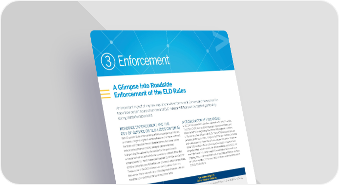 10 3 Enforcement ROADSIDE ENFORCEMENT AND THE OUT-OF-SERVICE CRITERIA (OOS CRITERIA) FMCSA and its State enforcement partners are preparing materials and conducting training for their compliance and enforcement staff. For State and Canadian Provincial enforcement, the Commercial Vehicle Safety Alliance (CVSA), an organization dedicated to improving the uniformity of roadside CMV inspection and enforcement efforts in North America, recently added ELD-related information to its “North American Standard Out-of-Service Criteria” (OOS criteria), the pass-fail criteria for driver and vehicle inspections. The purpose of the OOS criteria is to identify critical violations that render the driver, vehicle and/or cargo out of service until the condition(s) or defect(s) can be corrected or fixed. A CLOSER LOOK AT VIOLATIONS In 2017, CVSA added ELD violation information to its OOS criteria. To do this, CVSA reviewed existing paper logbook violations, and added information explaining how these OOS logbook violations will be enforced on drivers with ELDs. These CVSA explanations are provided in the table below. Keep in mind that the violations included in the table are only those that will result in an OOS order. There are other ELD-related violations that could be cited during a roadside inspection, but would not result in the driver being placed OOS. For example, these include missing ELD record information such as a shipping document number, a truck or tractor identification number, or a trailer number. These non-OOS violations will not be included in CVSA’s OOS criteria. An important aspect of any new regulation is its enforcement. Carriers and drivers need to know how certain hours of service and ELD-related violations will be treated, particularly during roadside inspections. A Glimpse Into Roadside Enforcement of the ELD Rules Paper Logbook Out-of-Service Violation Corresponding ELD Out-of-Service Violation No record of duty status (i.e., log) 1. If a driver is required to have an ELD and the vehicle is not equipped with an ELD (or AOBRD until Dec 17, 2019), the driver is considered to have no record of duty status 2. If a driver does not log into the ELD as required (see 395.22(e)), the driver is considered to have no record of duty status 3. If a driver is unable to produce or transfer the data from and AOBRD or ELD to an authorized safety official as required by 395.15(b) or 395.24(d), the driver is considered to have no record of duty status 4. If a driver/carrier is using an ELD that is not authorized by the FMCSA per 395.22(a), the driver/carrier is considered to have no record of duty status 5. If a carrier does not repair a malfunctioning ELD within 8 days, or obtain an extension from the FMCSA Division Administrator as required by 395.34(d), the driver is considered to have no record of duty status False log If a driver is required to have an ELD and the vehicle is not equipped with an ELD (or AOBRD until Dec 17, 2019), the driver is considered to have no record of duty status Driver not in possession of previous seven (7) days of logs If a driver with a malfunctioning AOBRD or ELD fails to reconstruct logs for the current 24-hour period and the previous 7 days as required by 395.15(f) or 395.34(a)(2), the driver is considered to not have the previous 7 days of logs 1. 2. 3.