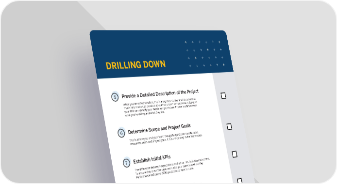 5 Provide a Detailed Description of the Project While you’ve vetted vendors, this is a key step. Gather and document as much information as possible about the project so that those bidding on your RFP can identify your needs early on to see if there is a fit between what you’re asking and what they do. 6 Determine Scope and Project Goals This is where you and your team thoughtfully indicate specific tasks, resources, costs and project goals. It is a critical step in the RFP process. 7 Establish Initial KPIs The difference between expectations and actual results is disappointment. To ensure this is not the case, work with your team to spell out Key Performance Indicators (KPIs) you’d like to have in place. 8 Indicate Time Frames and Deadlines Take your time...(no pun intended). Spell out exactly what you believe are your needs for the project. Do this with the understanding that flexibility may be required at first--without going outside of scope--to get the job done right. DRILLING DOWN 9 Communicate With Your Internal Team No one likes surprises. When appropriate, inform key stakeholders as well as employees of upcoming changes that may affect their areas of responsibility. Doing so improves buy-in and morale.