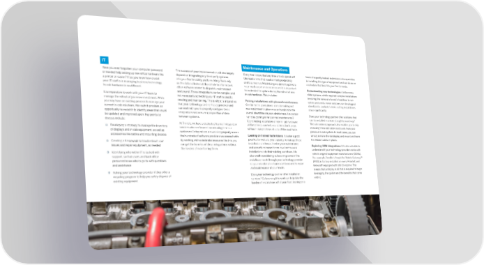 IT Maintenance and Operations Have you ever forgotten your computer password The success of your implementation will also largely Every fleet knows that any time a truck spends off team of expertly trained technicians who specialize or needed help setting up new office hardware like depend on integrating any third-party systems the road is time that results in lost productivity in installing this type of equipment and can do so on a printer or copier? If so, you know how crucial into your fleet mobility platform. Many fleets rely and lost revenue. Maximizing equipment uptime is a schedule that best fits your fleet’s needs. your IT staff is in managing business technology. on the data collected at the vehicle to inform back very much an art and a science and it is important Understanding new technologies: Unlike many In-cab hardware is no different. office software related to dispatch, maintenance to maintain this uptime during the rollout of new older systems, which required complex installations and payroll. These integrations can be complex and in-cab hardware. This includes: involving the removal of a cab’s headliner to run It is imperative to work with your IT team to not necessarily something your IT staff is used to manage the rollout of your new investment. While creating and maintaining. This is why it is imperative Pairing installations with planned maintenance: cables and cords, newer solutions can be plugged you may have an existing process to manage your that your technology partner has experience and Similar to the point above, consider rolling out directly into a vehicle’s dash, cutting install times current in-cab solutions, this switch provides an can work with you to properly configure these new equipment in phases so as to minimize the down significantly. opportunity to revisit it to identify areas that could integrations and ensure a proper flow of data overall downtime on your vehicle base. Are certain Does your technology partner offer solutions that be updated and improved upon. Key points to between systems. vehicles coming in for planned maintenance? can be installed in a more straightforward way? discuss include: Coordinating installation of new in-cab hardware This streamlined approach also enables you to skip At Trimble, we have a dedicated team of integration at these times can help you address both areas removing these old cables and cords from your | Developing a strategy to manage the inventory services who are focused on ensuring that our without having to take a truck off the road twice. of displays and in-cab equipment, as well as customers’ integrations are working properly across previous in-cab system. In most cases, you can accessories like cables and mounting devices the hundreds of software providers we connect with. Leaning on trained technicians: It is also a good simply remove the old display and mount and leave By working with a dedicated resource like this, you practice to evaluate your capacity to manage these the hidden cables in place. | Creating a framework to troubleshoot user installations in house. Involve your maintenance issues and repair equipment, as needed can get the benefits of these integrations without Exploring OEM integrations: It is also valuable to the hassles of maintaining them. and operations teams to see how best to work understand if your technology provider works with | Identifying who within IT is tasked with installations into their existing workflows. It is vehicle original equipment manufacturers (OEMs). support, so that users and back office also worth considering outsourcing some of the For example, Trimble’s PeopleNet Mobile Gateway™ personnel know who to go to with questions installation work through your technology provider (PMG) is factory-installed on every Peterbilt and and assistance so your maintenance teams can focus on the repair Kenworth equipped with MX-13 engines. This and maintenance of your trucks. means that a display is all that is required to begin | Asking your technology provider if they offer a recycling program to help you safely dispose of Does your technology partner offer installation leveraging the system and the benefits that come existing equipment services? Outsourcing this work can help take the with it. burden of installations off of your fleet, leaning on a 101010