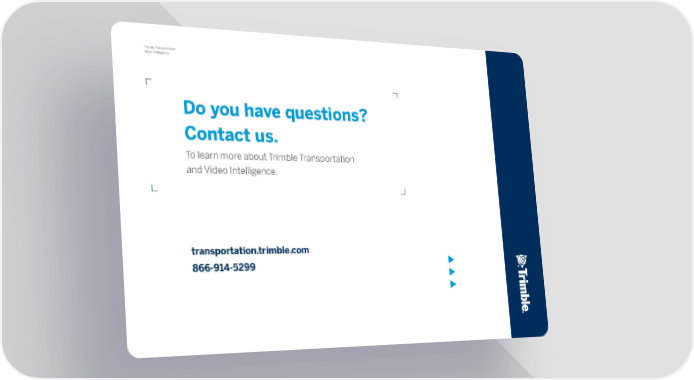 Video Intelligence Protection Prevention Page 12 13 Trimble Transportation Video Intelligence Do you have questions? Contact us. To learn more about Trimble Transportation and Video Intelligence. transportation.trimble.com 866-914-5299